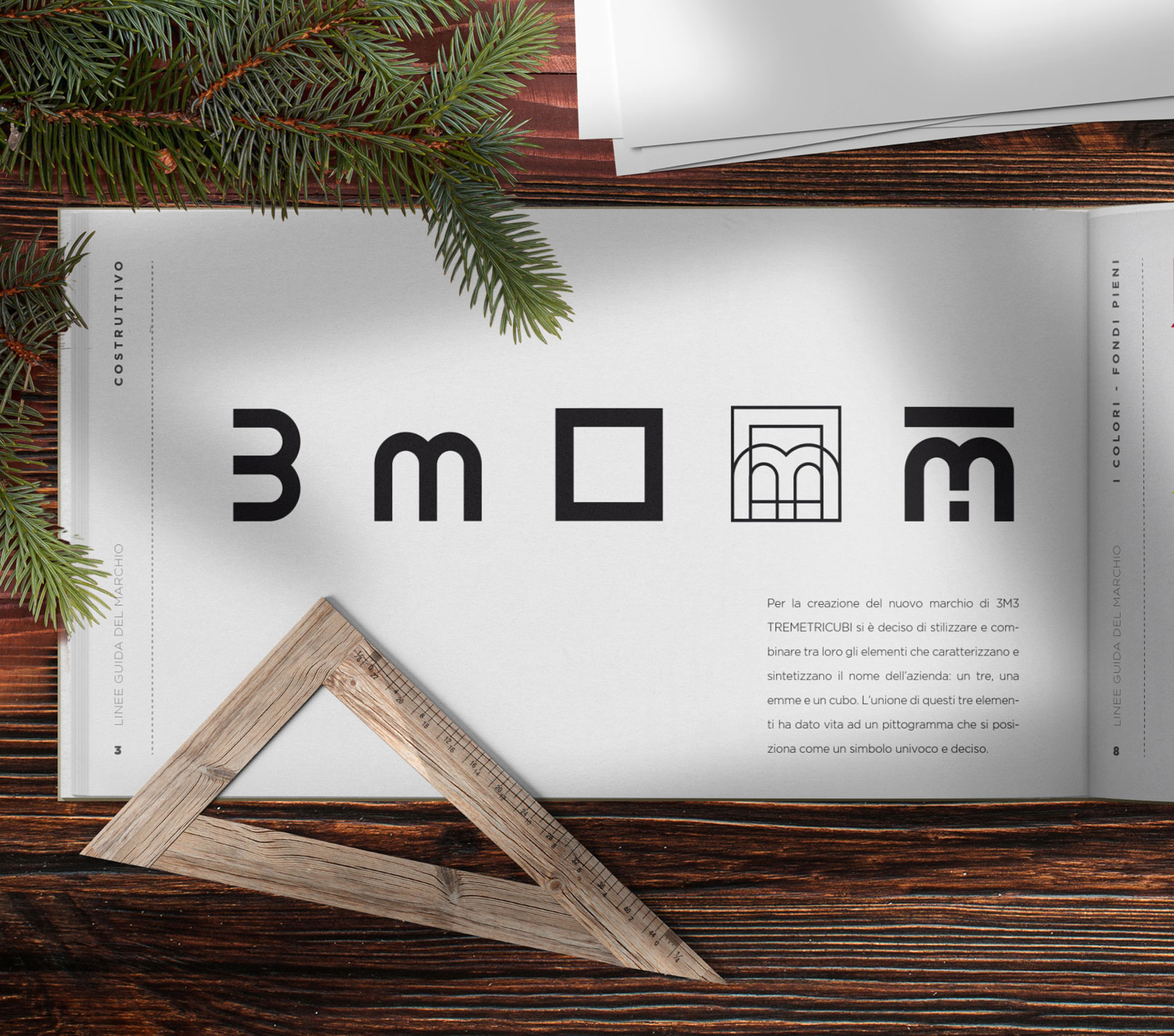 Una volta analizzata attentamente la situazione, è stato progettato un logotipo/marchio che stilizzasse e mixasse i tre elementi che compongono la denominazione dell’azienda: il “3”, la “M”, il “CUBO”. Da questa fusione è nato un pittogramma decisamente nuovo e distintivo, che prevede il numero “3” che si fonde con la lettera “M” e con l’elemento orizzontale (una barretta), che rappresenta l’evocazione del “CUBO”. Quest’ultimo elemento è anche un riferiemento alle coperture dei prodotti venduti dall’azienda (il tetto di una casetta, appunto).