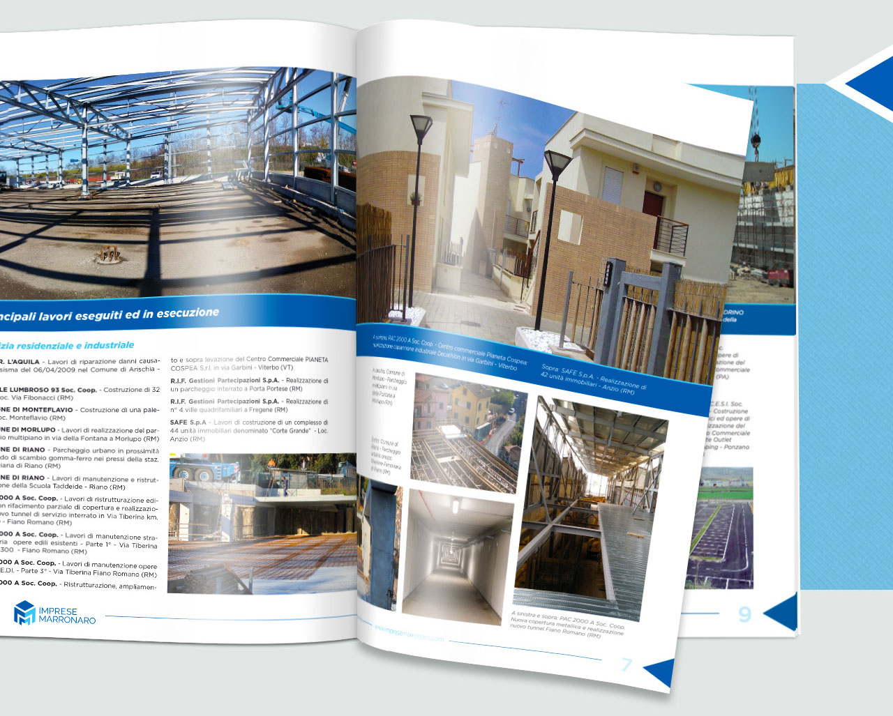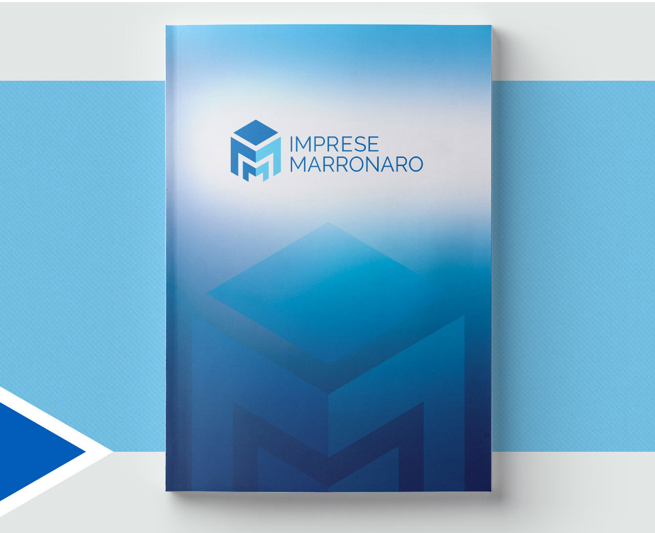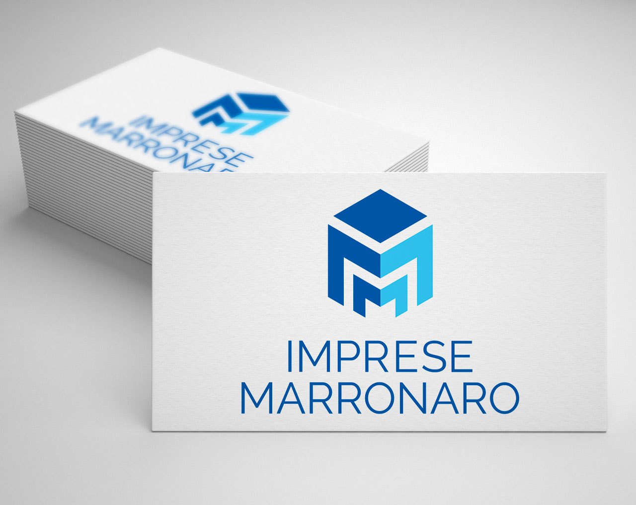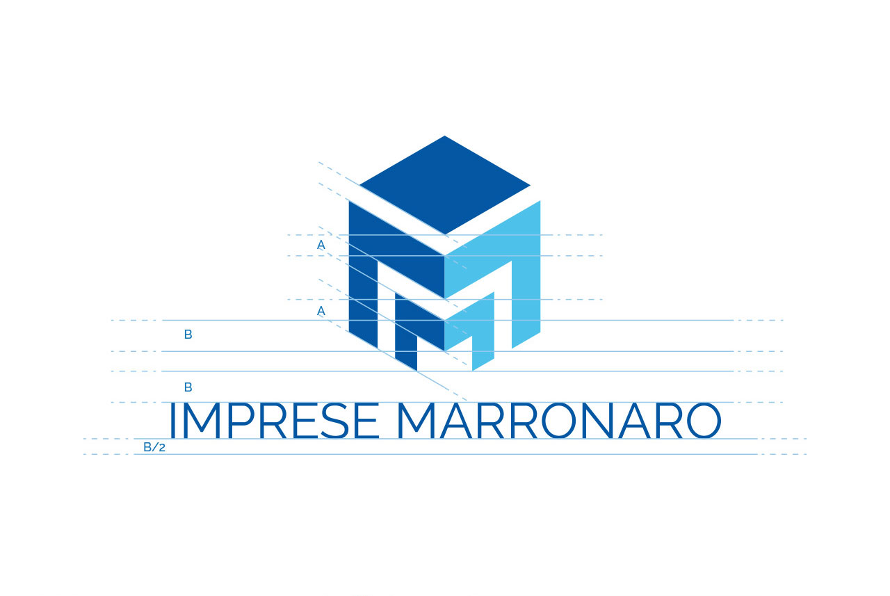 Proporre un nuovo brand che evocasse un palazzo stilizzato (in visione prospettica), giocando con linee blu e bianche che componessero le tre ”M”. La denominazione “Imprese Marronaro” rimane come componente completa del nuovo logotipo/marchio.