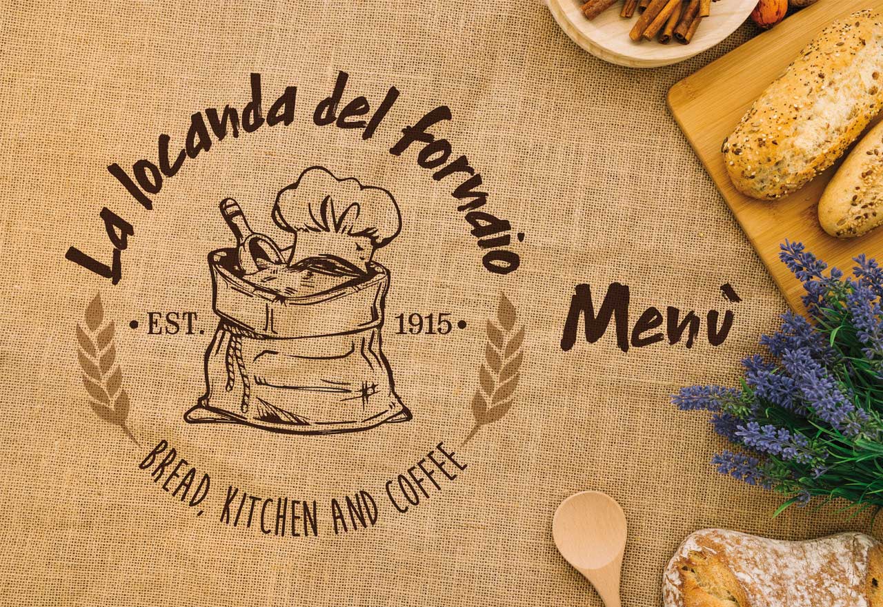 Una casa coloniale, con un antico forno all’interno, conosciuto da sempre come “il vecchio forno collatina”. Struttura da riattualizzare ed adibire a locanda, “La locanda del fornaio”, dove gustare, seduti ad un tavolo, pizza e pane fragranti, appena sfornati, unitamente ai piatti della più tradizionale cucina Romana. Questo è stato l’ambizioso progetto, al quale Graphid ha partecipato con l’ideazione del marchio, del pay-off istituzionale, dell’immagine coordinata, degli inviti e dei menù delle attività di ristorazione. Naturalmente, per sottolineare le atmosfere e gli ingredienti di primissima qualità, Graphid ha seguito lo shooting fotografico in ogni dettaglio, abbinando le foto ad illustrazioni semplici, immediate, con “sapore” anch’esso evocativo delle buone cose di una volta”.